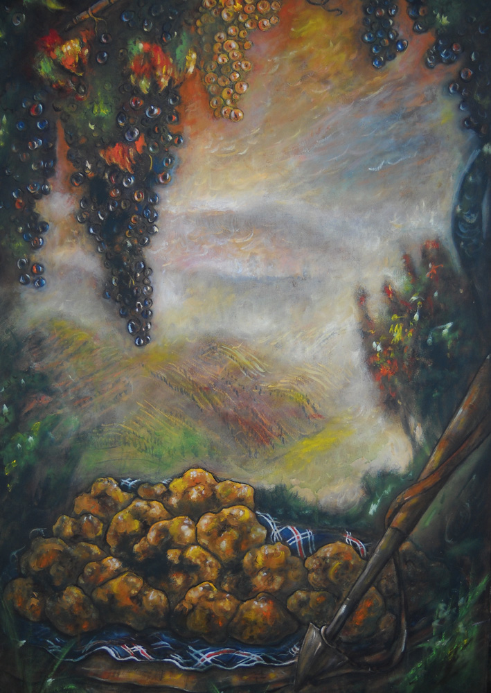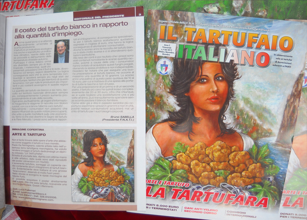 L’artista durante una ricerca di tartufi nel 2002, dopo aver trovato un bel tartufo maturò l’idea di realizzare alcune opere a riguardo. Nel 2003 nel compimento dei 50 anni realizza con la modella Francesca il dipinto “La Tartufara” raffigurando nel cesto di tartufi, al centro in alto, il tartufo trovato nel 2002. L'opera è reduce di successi presso grandi palazzi espositivi. E' considerata un simbolo della nostra terra e rappresenta tutte le qualità di tartufo che si raccolgono nell'intero anno. E' un'ulteriore contributo ad accrescere l'immagine dell'Italia nel mondo con la particolarità che ci guarda da ogni posizione. In seguito realizza altri dipinti sui tartufi, fra i quali il dipinto “Da Bramante a Dalì, omaggio al tartufo” nel 2011 su suggerimento del Maestro Josè Van Roy Dalì – www.josevanroydali.it, figlio del grande pittore catalano Salvador Dalì.