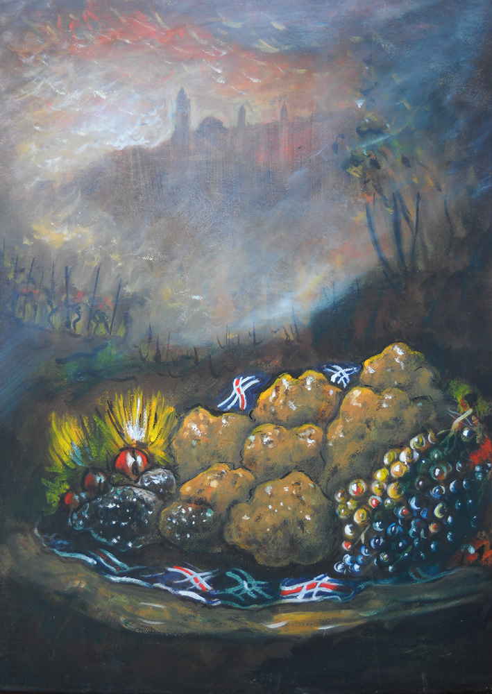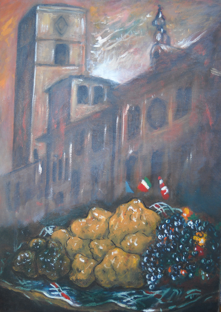 ![]() Con questo dipinto l'artista è stato inviato a partecipare a numerose manifestazioni tra le quali: Fiera Internazionale del Tartufo Bianco d'Alba, Mostra Mercato Nazionale del Tartufo Bianco Pregiato di S.Angelo in Vado, Mostra Mercato del Tartufo Bianco e dei Prodotti del Bosco di Apecchio, ![]() ![]() ![]() ![]() ![]() ![]() ![]() Altri Dipinti con Tartufi